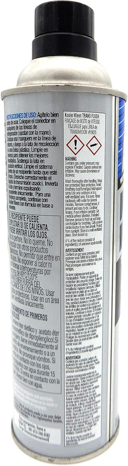 LUBEGARD Kooler Kleen High Pressure Transmission Cooler Flush (Water Based Formula) works like a fire hose, jettisoning away grease, dirt, sludge, and metal shavings that taints transmissions. And it inhibits their return! It's all about the high pressure dispensing and proprietary formula that contains no CFC's or chlorinated solvents. For those who prefer water based cleansers, this is your Trans Flush!