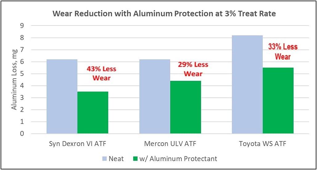Reduces aluminum wear by an average of 35% when in contact with steel or aluminum such as valve bodies, servo bores, pistons, etc.