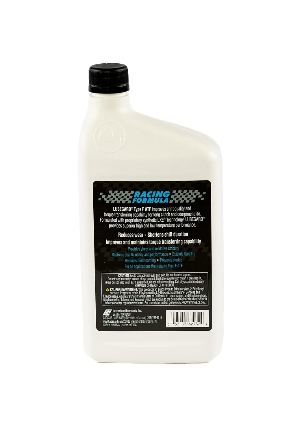 LUBEGARD®’ COMPLETE™ Type F Automatic Transmission Fluid is recommended for all automatic transmissions that require Type F ATF including 1980 and earlier Ford, Lincoln and Mercury vehicles, as well as Mazda, Saab, Volvo, Jaguar, and all other applications that require Type F fluid. LUBEGARD improves shift quality and imparts excellent torque transferring capacity for long clutch and component life. Formulated with proprietary LXE® Technology, LUBEGARD provides superior high and low temperature performance and protects from wear. LUBEGARD for Type F are ideal for racing applications that require rapid shifts to maximize the power to the drive wheels during acceleration.